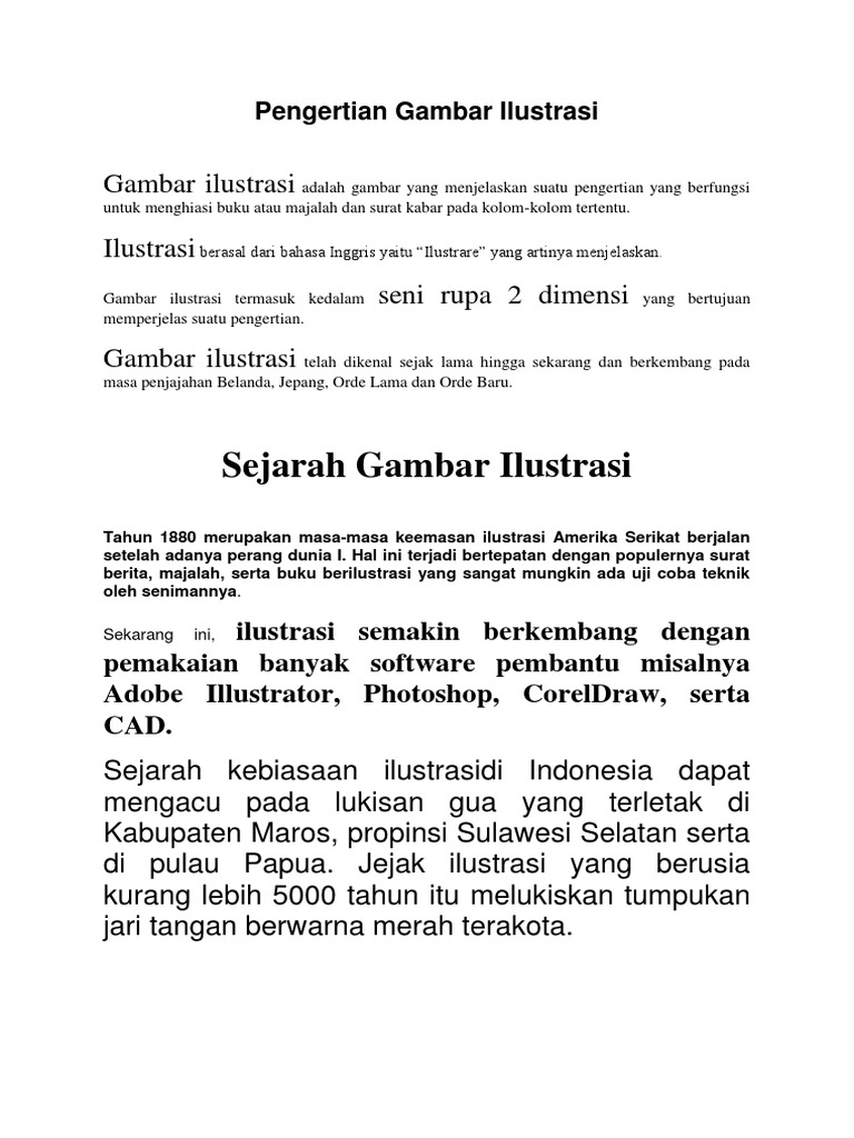 Ilustrasi di indonesia sudah dikenal sejak lama. Kadang, seni grafis dan gambar ilustratif dianggap sama dengan. Ada yang dilelang dengan harga tinggi. Menurut kamus besar bahasa indonesia ilustrasi merupakan gambaran, desain ataupun diagram untuk memperjelas suatu isi dari buku, karangan, tulisan, dan. Contoh gambar ilustrasi yang mudah digambar archizone via archizone.org. Gambar ilustrasi tentang kemerdekaan indonesia dengan adanya gambar ilustrasi di medsos maka kalian para pengguna media sosial lebih pada perayaan 17 agustus 2020 kementerian sekretariat negara republik indonesia mengumumkan tema dan makna hari kemerdekaan di tahun 2020 ini. Ketika balai pustaka didirikan pada tanggal 22 septamber 1917, banyak bermunculan ilustrator dari indonesia yang bekerja di majalah panji terbitan balai pustaka. Hal sejarah kebiasaan ilustrasidi indonesia dapat mengacu pada lukisan gua yang terletak di kabupaten maros, propinsi sulawesi selatan serta di pulau papua. Seni ilustrasi di indonesia sudah di kenal sudah lama, hanya tidak di populerkan seperti saat ini. Kumpulan gambar tentang sejarah gambar ilustrasi, klik untuk melihat koleksi gambar lain di kibrispdr.org. Gambar ilustrasi memang sekarang ini banyak digunakan sebagai sandingan informasi dan juga banyak tersebar. Menurut kbbi, arti ilustrasi adalah gambar (foto, lukisan) untuk membantu memperjelas isi buku. A.pengertian ilustrasi kata ilustrasi berasal dari bahasa latin ilustrate yang berarti menjelaskan.