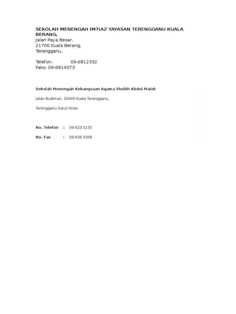 Related : Alamat Imtiaz Kuala Terengganu - Selamat datang ke laman web..